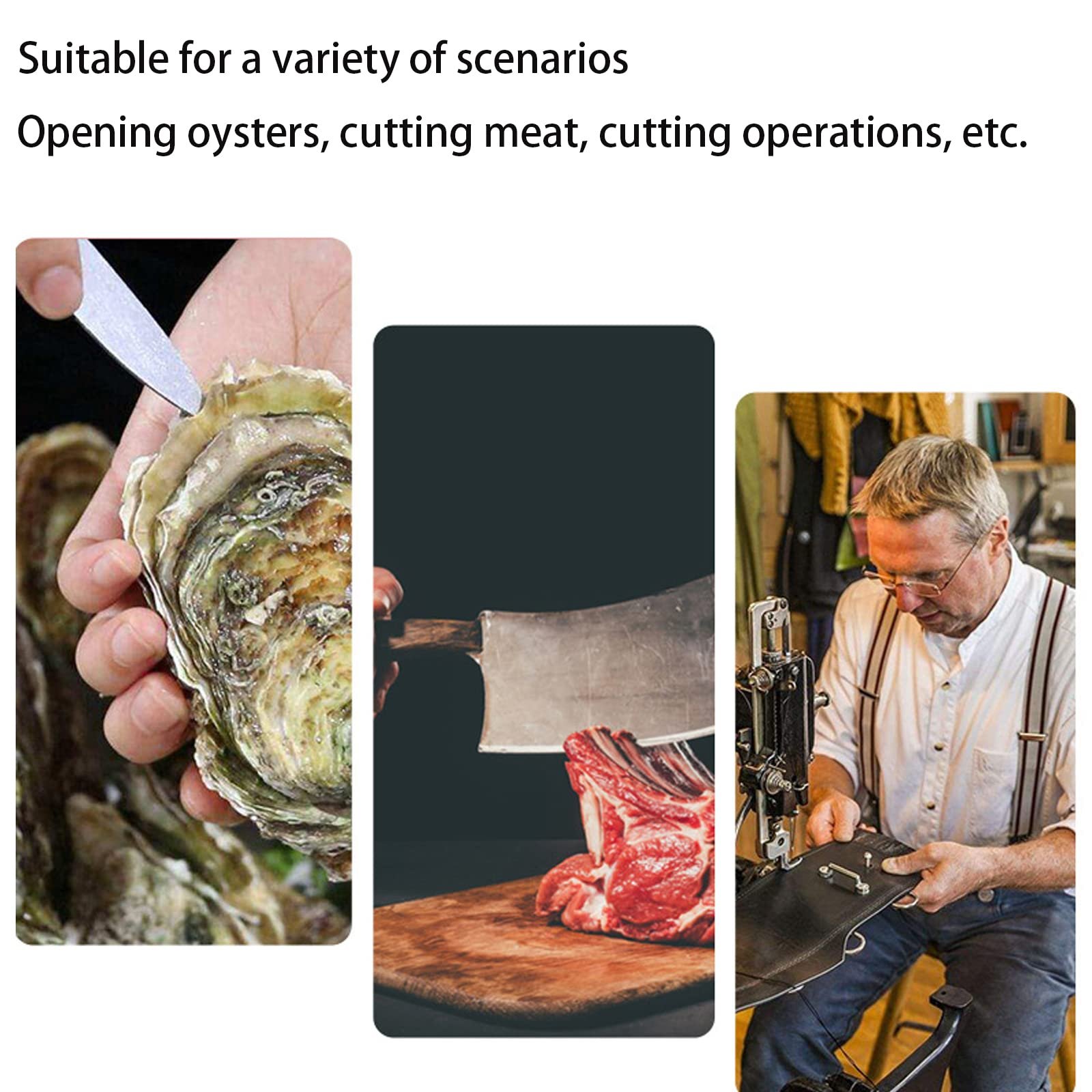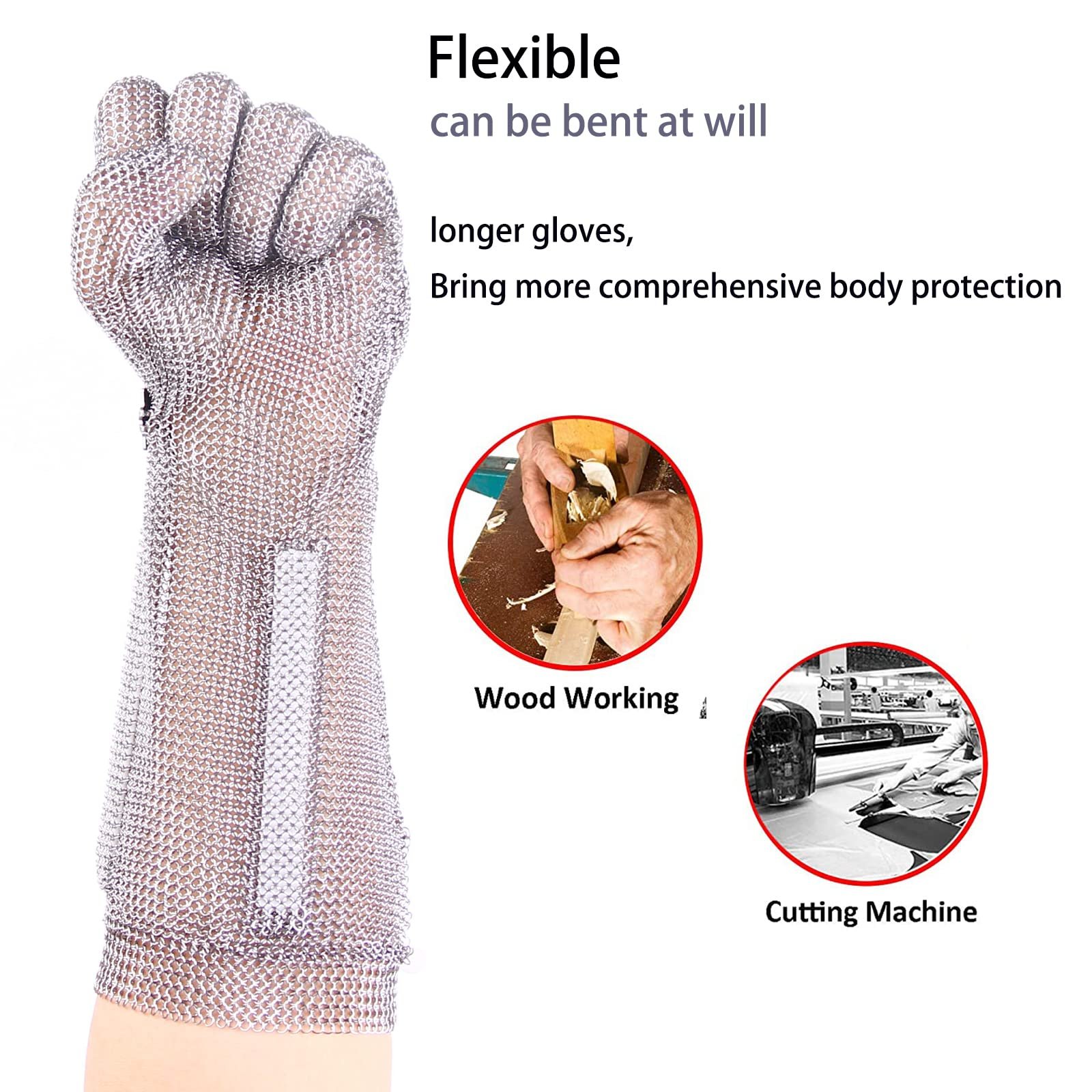 – The interlocking metal mesh structure absorbs and disperses force from knives and sharp tools, providing reliable protection without limiting hand movement.