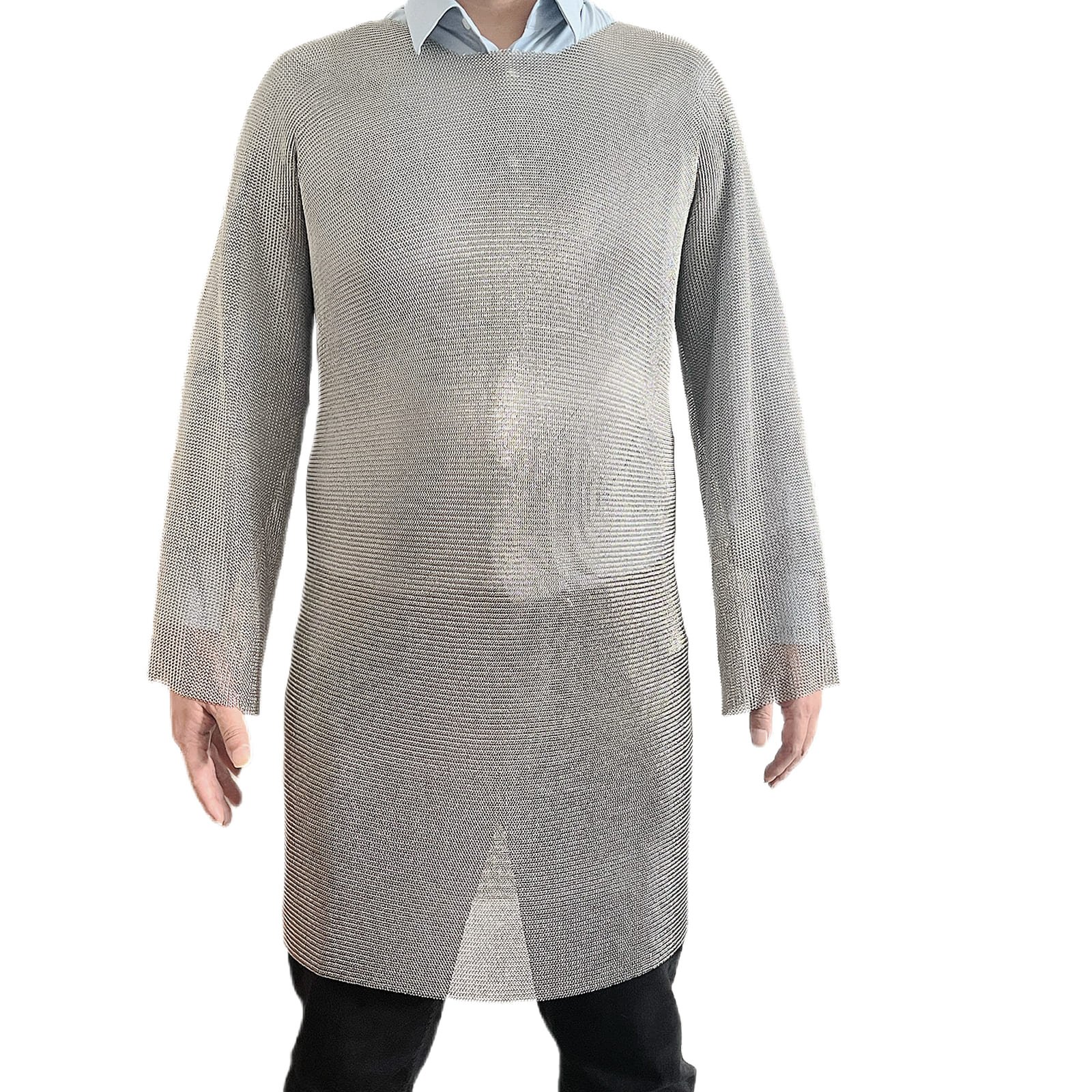 – Built from thousands of individually welded stainless steel rings, this chainmail shirt forms a dense protective structure designed to reduce the risk of cuts and punctures while maintaining flexibility and comfort during wear.